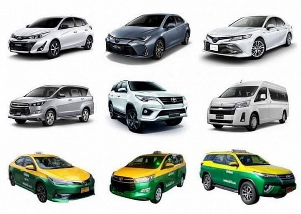 ทางเรามีแท็กซี่ 5 ที่นั่ง 7 ที่นั่งรถตู้ VIP 9 ที่นั่ง และรถ